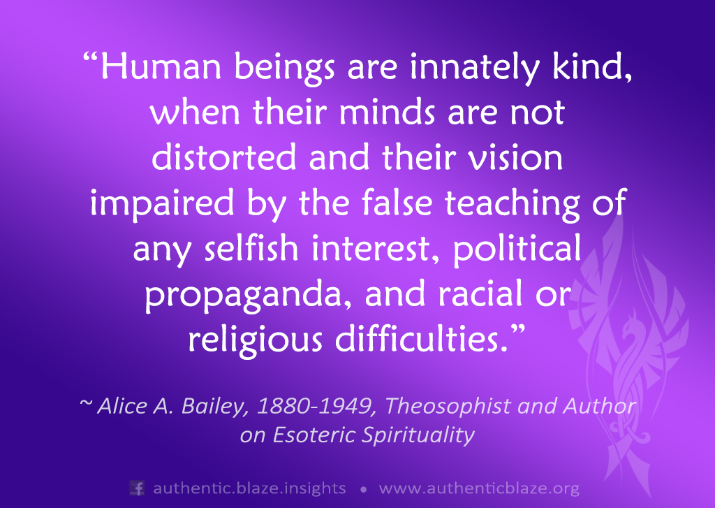 “Human beings are innately kind, when their minds are not distorted and their vision impaired by the false teaching of any selfish interest, political propaganda, and racial or religious difficulties.”