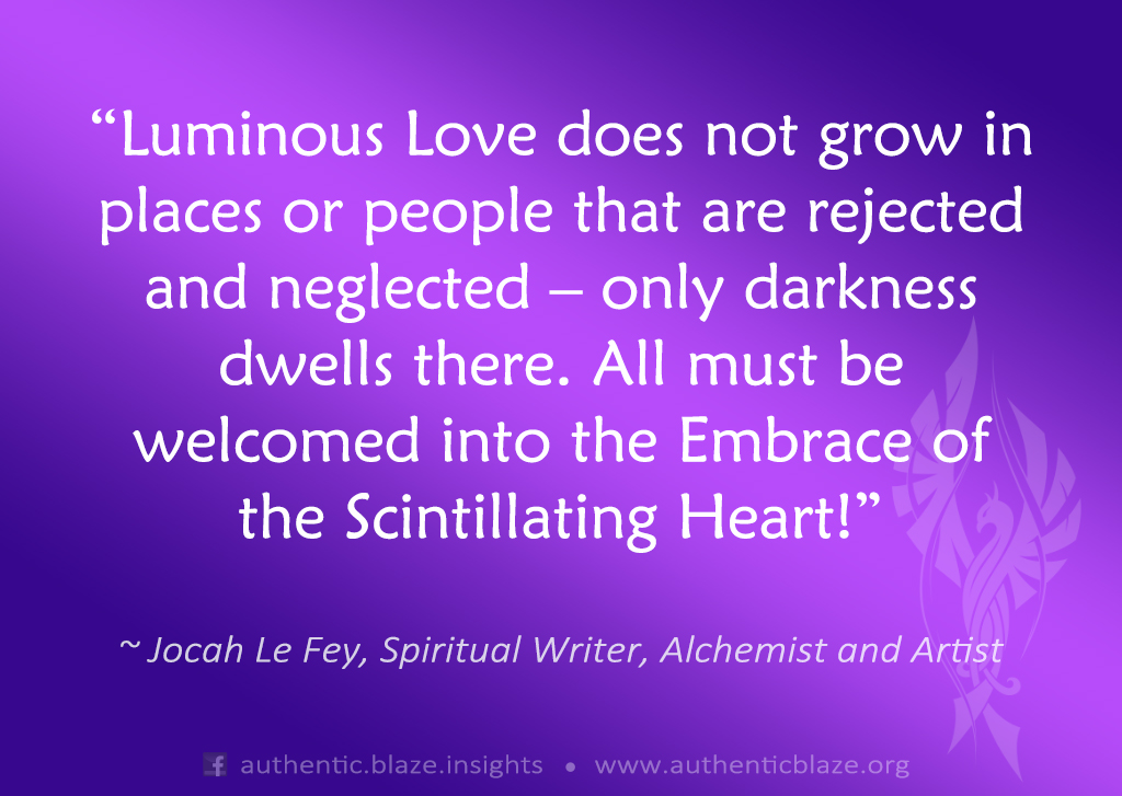 “Luminous Love does not grow in places or people that are rejected and neglected – only darkness dwells there. All must be welcomed into the Embrace of the Scintillating Heart!”